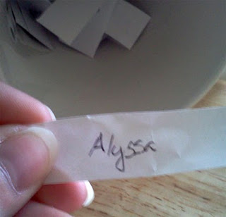 I put all the names into a cup and with the help of my 8-month-old assistant, drew one and crinkled the paper real good…