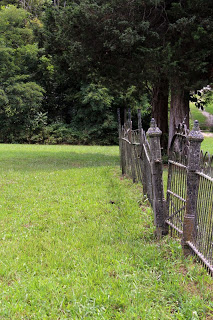 I’m not sure if it used to surround the whole cemetery or if it ran to the treeline or what, but there’s a bit of fencing left, some of it wired to stakes that have to hold it up.