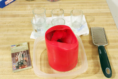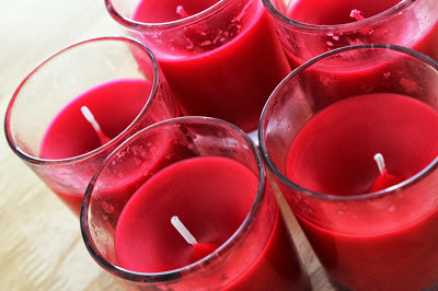 Start by making sure your candle holders are clean and empty. Mine wouldn’t come perfectly clean, but no big deal! They’re just for me to use. If you’re having trouble getting old wax out of votive glasses, pop them in the freezer for half an hour or so. When you take them out, the leftover wax should pop right out when you press the edge with a knife.
