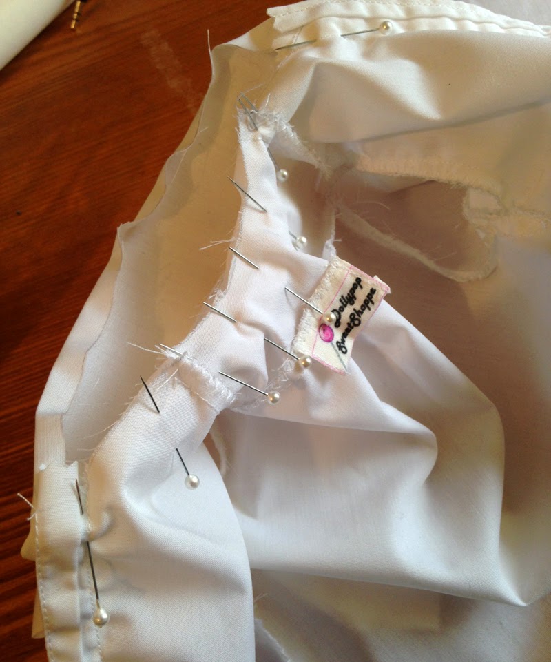 Roll it another 1/4″, pin it and sew to create the bottom hem. Then get ready, because next comes the difficult stuff.
