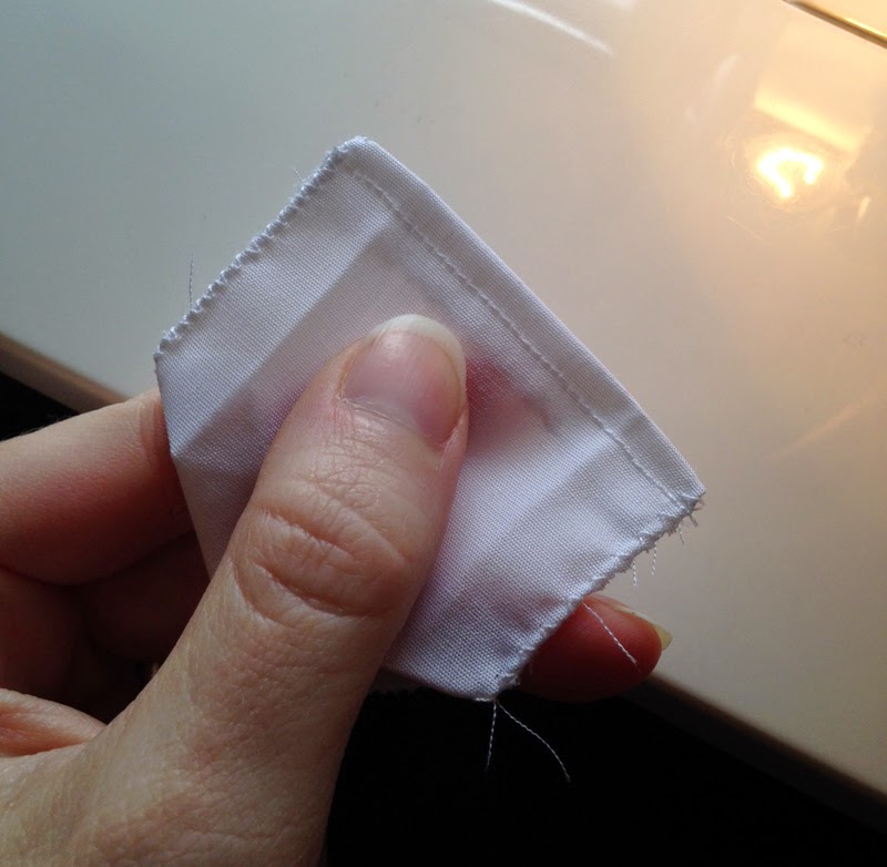 Zig-zag all the way around the edges of the pocket piece, then fold the edges over by 1/4″ and press.