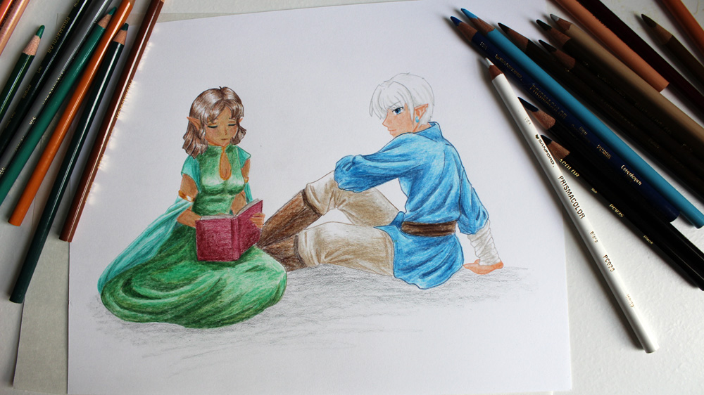 As I developed these characters, I decided to do artwork for each of them. With their friendship in mind, it made sense to draw Zaide and Resia together, perhaps during one of her lessons.