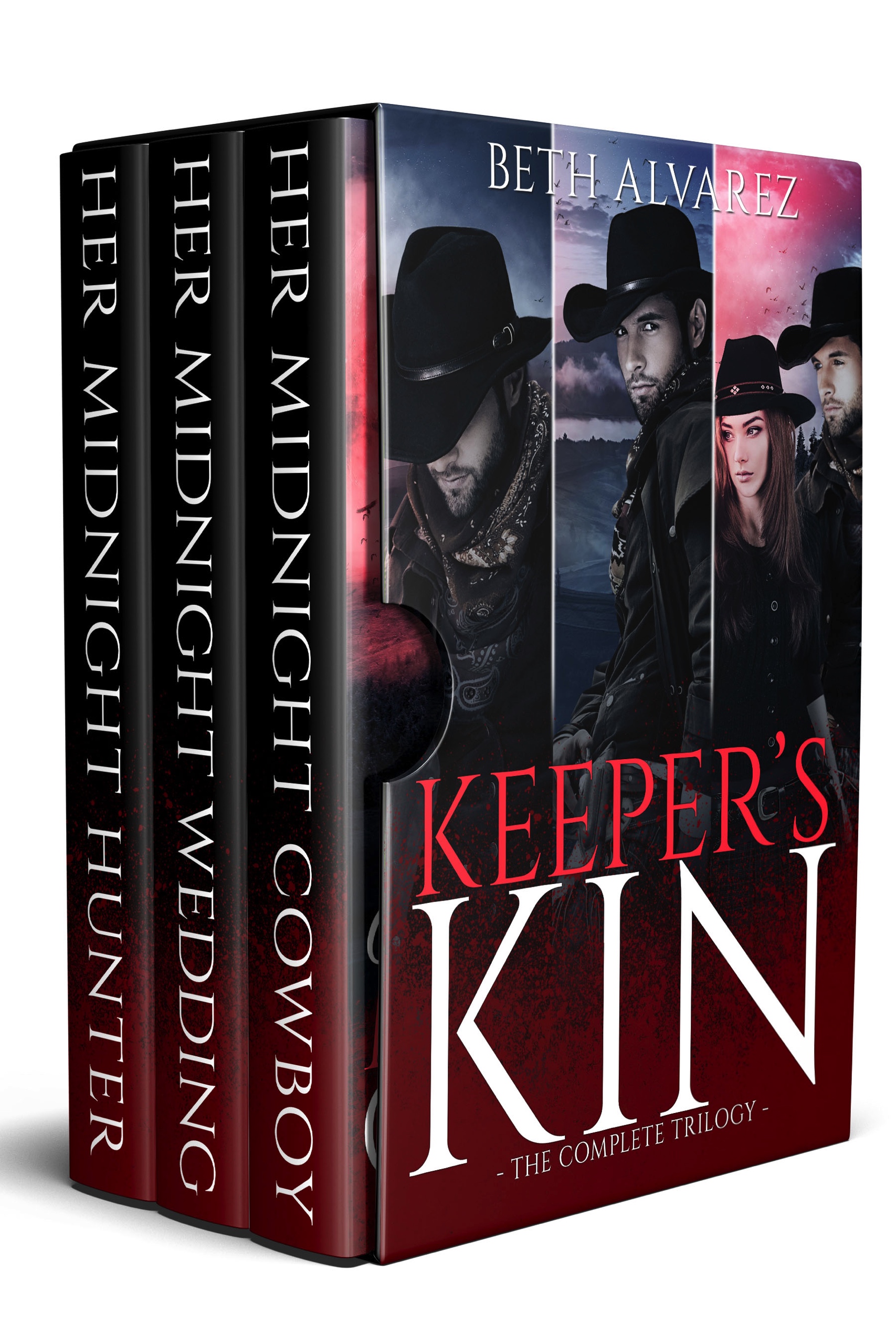 The set includes Her Midnight Cowboy, Her Midnight Wedding, and Her Midnight Hunter. If you’ve read these books before, there’s nothing new for you to see here, but you’re still welcome to ogle the way the digital box set looks now that the series is all together!