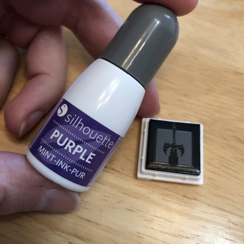 Rune’s colors are very clearly always going to be purple and green (much as he hates the latter) so using purple for the stamp of his sword from book 4 seemed like a good choice. I still plan to make a stamp of his rune-stone icon from book 3, and I’ll probably go with green for that one. I don’t actually have all that many colors of ink, but the seven I have are plenty, even if they’re not enough to get through all the icons, considering book 4 had so many!
