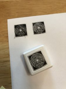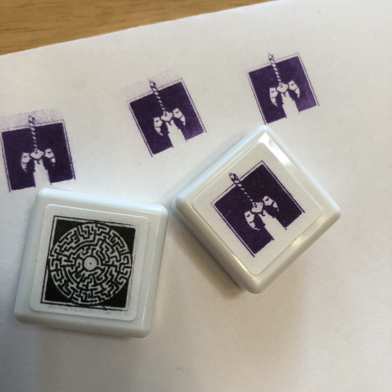 The hardest part has been deciding what colors of ink to use for the stamps. They can be re-inked with another color later, but they’re good for thirty to fifty stampings once inked and I don’t see myself using them up quickly. Ilmenhith’s star will obviously be blue, and while I considered green for the maze from book 2, I thought a more sedate black would work better for that design.
