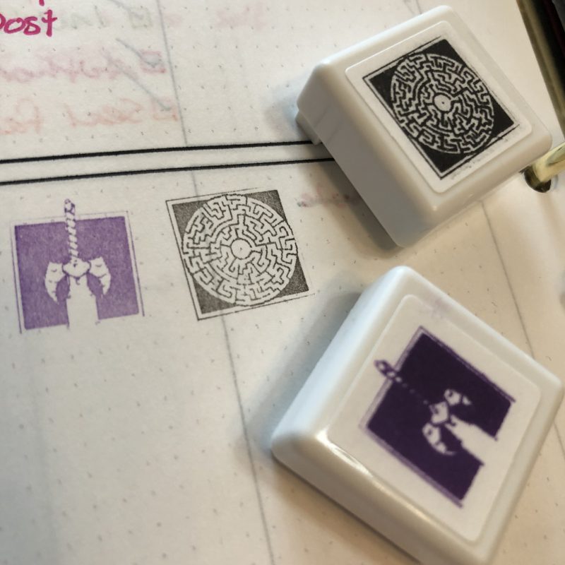 I took some of the chapter header icons I’d drawn for some of the Snakesblood books and made them into these little self-inking stamps that I could use in my planner, because I’m always looking for new ways to include color and images, and stickers only get me so far. Since I’ve got the seven-pointed star from the first book on the cover of my planner I’ve been using for Q1, I figured the icons would be a nice addition.
