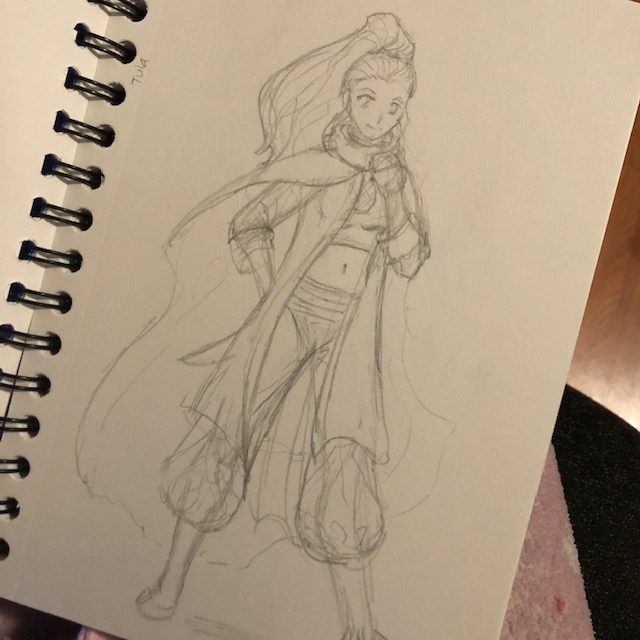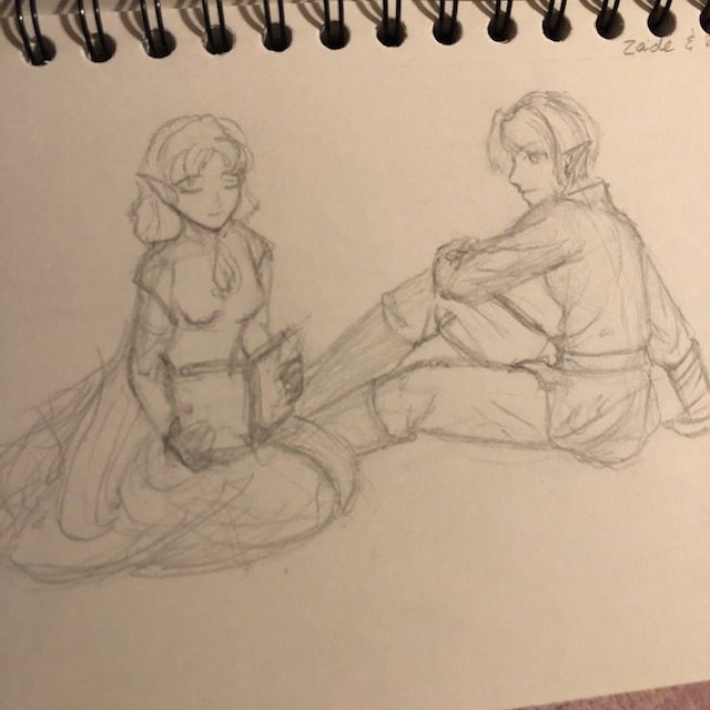 One interesting tidbit about this sketch here though is Zaide’s ear. In the books, his left ear is truncated, having had the pointed tip cut off in some accident he doesn’t recall. This sketch was done before I’d decided to take that path in the story, which is amusing to me because it ends up being an important piece of symbolism later on!